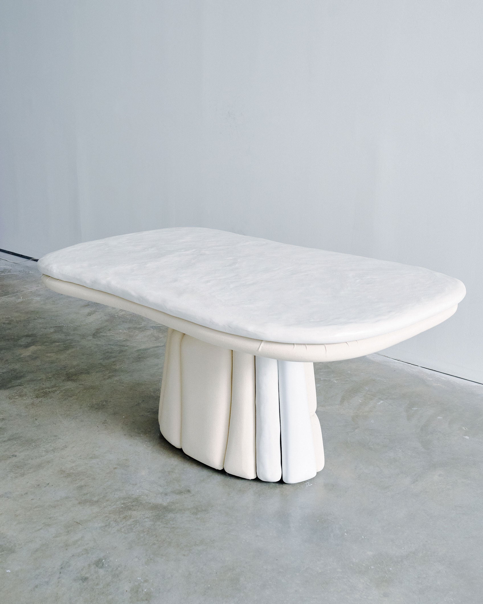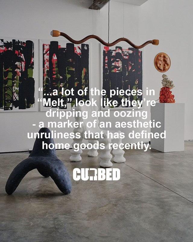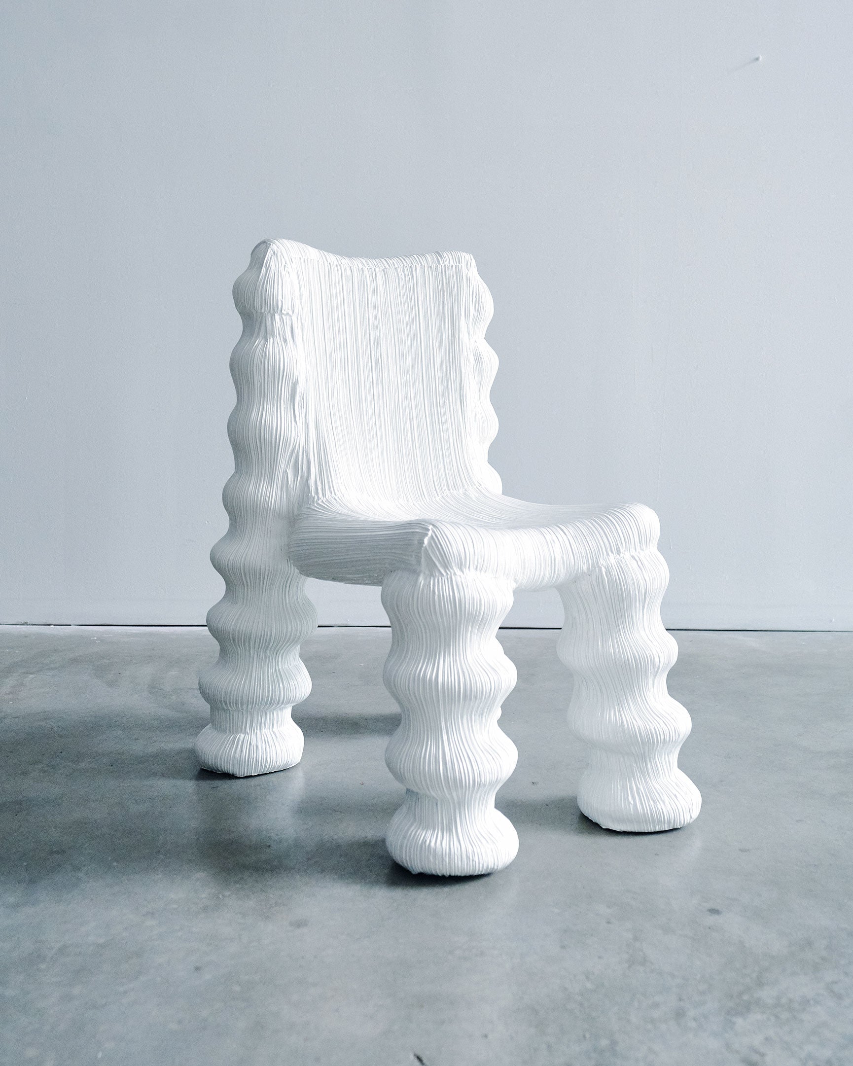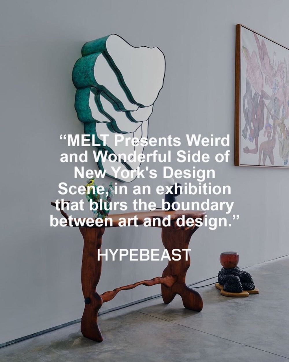 MELT brought together over 30 artists in a compelling exploration of materiality, tension, and form. The show was widely praised for its thoughtful interrogation of how objects move between the realms of art and design. Gustavo Barroso, who has since shown work with Objective Gallery and collaborated with KidSuper and Louis Vuitton, contributed his Pink Slime Side Table, which embodied a striking tension between organic fluidity and structural control as its flowing, amorphous shape invited both curiosity and contemplation. Apprentice to Misha Kahn, Michal Cihlar contributed the Pleated Chair, introducing a sense of fragility, with its delicate folds reminiscent of architectural studies, challenging perceptions of durability and permanence while still holding the weight of its function.