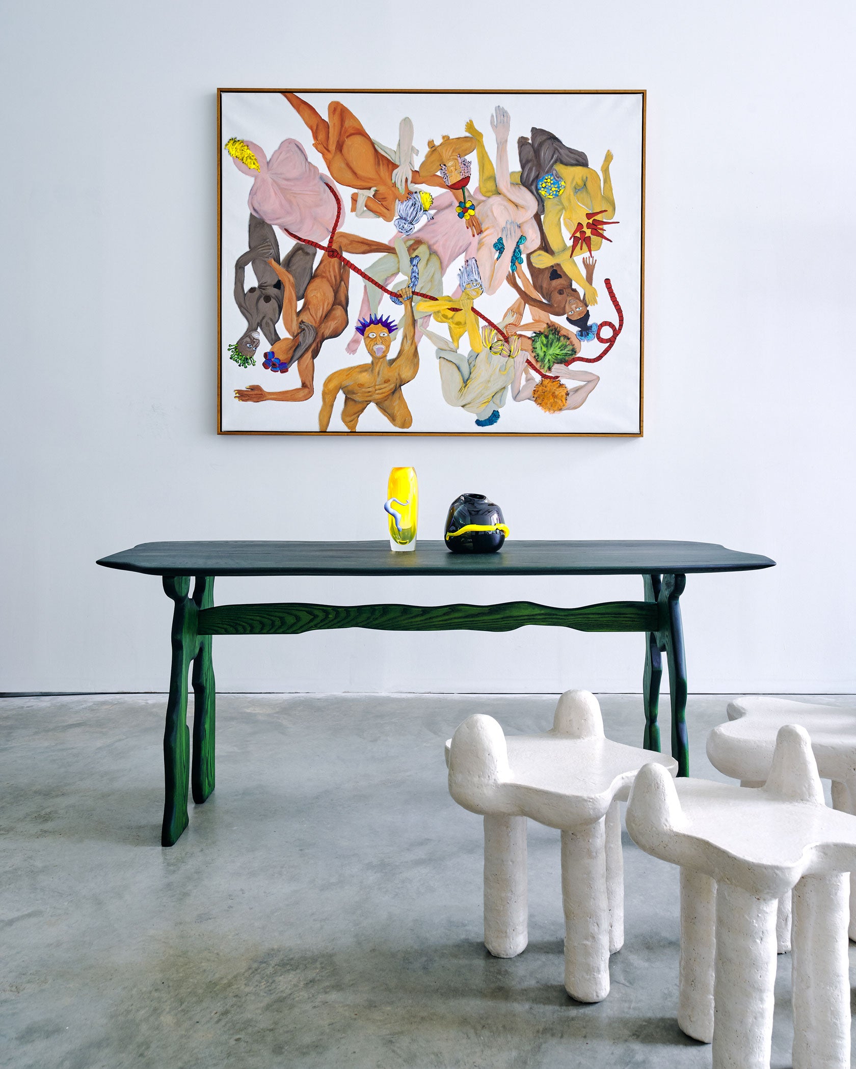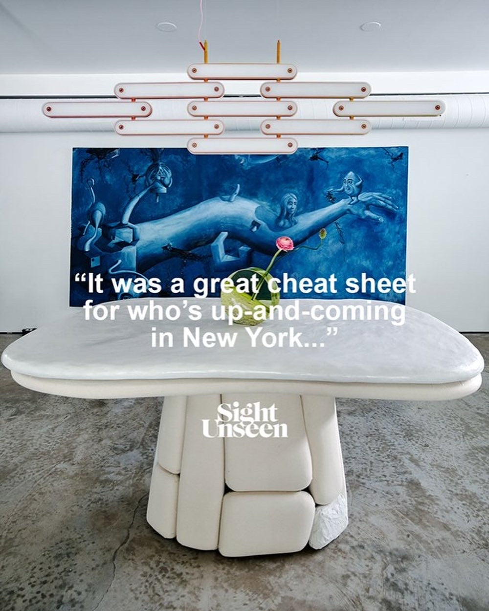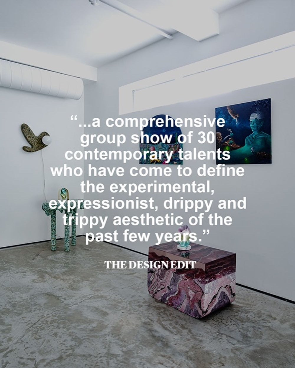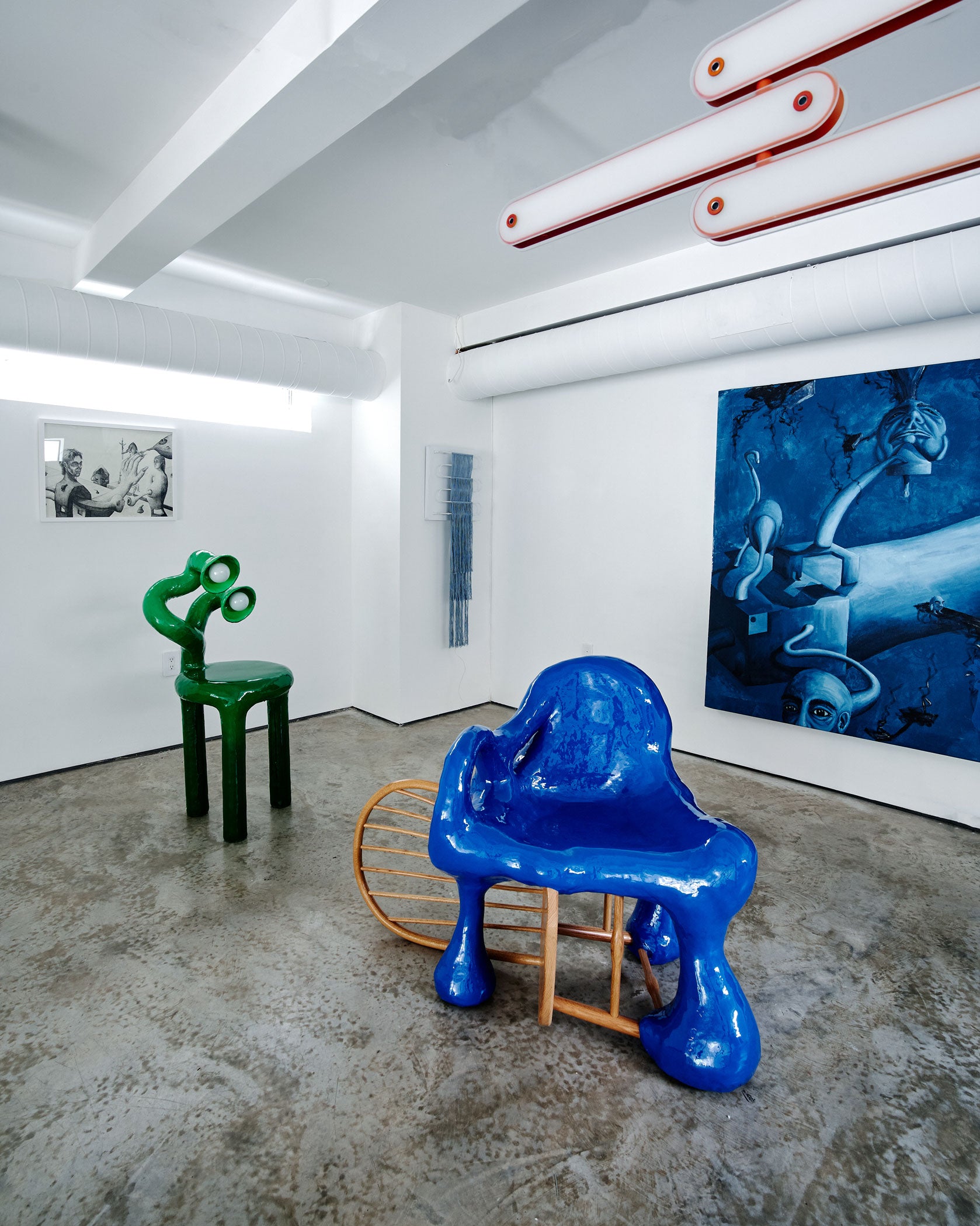 MELT brought together over 30 artists in a compelling exploration of materiality, tension, and form. The show was widely praised for its thoughtful interrogation of how objects move between the realms of art and design. Gustavo Barroso, who has since shown work with Objective Gallery and collaborated with KidSuper and Louis Vuitton, contributed his Pink Slime Side Table, which embodied a striking tension between organic fluidity and structural control as its flowing, amorphous shape invited both curiosity and contemplation. Apprentice to Misha Kahn, Michal Cihlar contributed the Pleated Chair, introducing a sense of fragility, with its delicate folds reminiscent of architectural studies, challenging perceptions of durability and permanence while still holding the weight of its function.